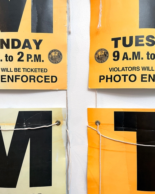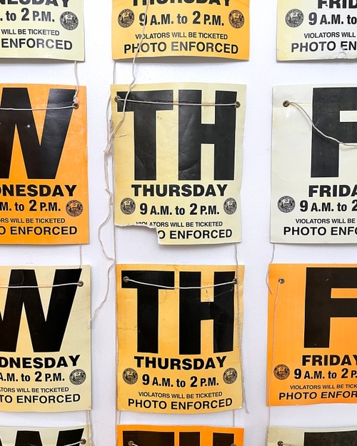 These signs are arranged in the shape of a calendar and can be rearranged to reflect the month in which they are being displayed.